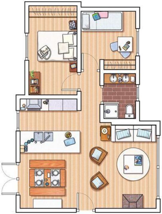 - Chức năng : Gồm 1 phòng khách 2 phòng ngủ, nhà bếp và nhà vệ sinh