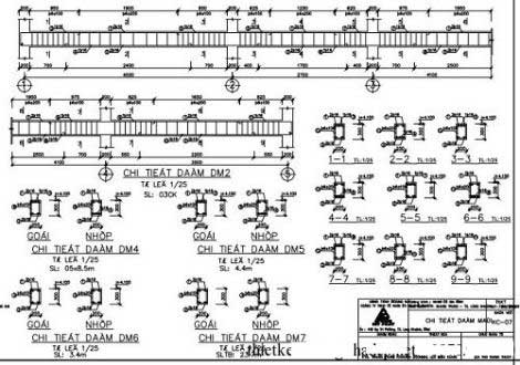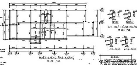 ♣ Bản vẽ kết cấu của nhà 1 tầng: