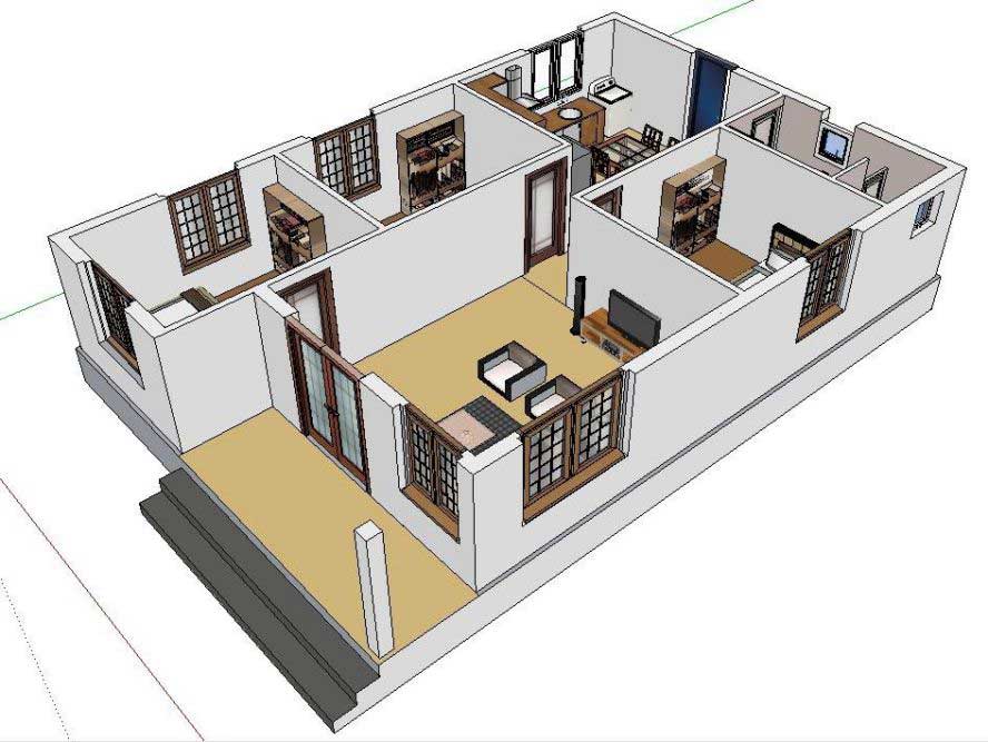 Trong những hình ảnh bản vẽ này, nếu bạn khó khăn hình dung, chúng tôi có sử dụng hình ảnh 3D dưới đây, cùng tham khảo để có cái nhìn toàn thể không gian nhé!