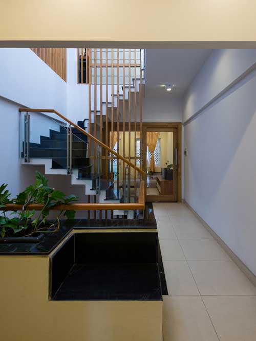 Dựa trên nền tảng vốn có, các KTS đề xuất kế hoạch đơn giản hóa thiết kế từ trang trí nội thất cho đến hình thành kiến trúc tổng thể. Theo đó, bằng cách tổ chức các không gian hợp lý và thông minh, diện tích của các phòng ốc sẽ trở nên rộng thoáng và tiện nghi hơn. Các phòng được thông nhau, tạo sự gắn kết mà vẫn phân chia được từng khu vực cụ thể. Đặc biệt, thiết kế chú trọng hấp thu ánh sáng và tạo sự thông gió, đối lưu không gian từ bên ngoài vào. Thiết kế khắc phục được hạn chế căn nhà dài và hẹp.