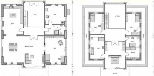 Mặt bằng tầng 1 bao gồm phòng khách , phòng ăn và phòng bếp thông với nhau , nhà vệ sinh ,… Mặt bằng tầng 2 bao gồm 3 phòng ngủ , 1 phòng ngủ lớn bao gồm cả phòng để đồ , 2 phòng ngủ nhỏ hơn , nhà tắm , nhà vệ sinh.