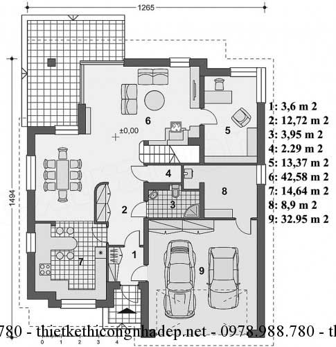 Không gian trong ngôi nhà được bố trí hợp lý và thông minh, với các khu vực cụ thể để cư dân sống thuận tiện và thoải mái, không gian riêng tư được đảm bảo. Cụ thể, khách hàng có thể tham khảo chi tiết thiết kế biệt thự 2 tầng dưới đây: