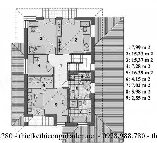 - Chiều cao nhà: 8.55m. Độ vát mái:25 độ.