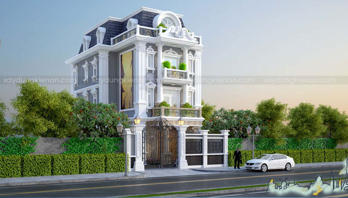 Giới thiệu đến gia chủ tương lai phối cảnh mặt tiền mẫu biệt thự 4 tầng 100m2 vẫn với phong cách kiến trúc tân cổ điển sang trọng, cổ điển và kèm theo đường nét hiện đại trong từng đường nét kiến trúc. Nhìn vào mặt tiền của mẫu biệt thự 4 tầng 100m2 này có thể thấy kiến trúc sư sử dụng đến 2 sảnh với bậc cầu thang với phần tay vịn chắc chắn được là nên từ khối xi măng, gạch chắc chắn với chi tiết được làm nên từ chính đôi bàn tay khéo léo của những người thợ lâu năm chuyên thi công phong cách thiết kế này.