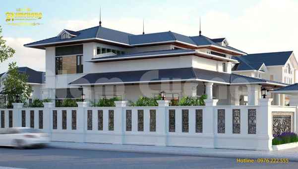 Phong cách cổ điển không còn xa lạ nhưng điều đặc biệt thu hút sự chú ý của du khách chính là việc vận dụng khéo léo và sáng tạo đường nét kiến trúc mờ ảo này với văn hóa bản địa để tạo nên một ngôi biệt thự cổ điển nguy nga. Nó lộng lẫy, sang trọng và kiêu kỳ. Hệ thống gờ phào chỉ tinh tế, cột trụ vững chãi khiến ngôi biệt thự cổ điển Châu Âu càng thêm cuốn hút. Các kiến trúc sư đã nghiên cứu kỹ lưỡng để đưa ra những giải pháp tốt nhất, họ đã mang đến những ngôi biệt thự đầy đủ các không gian chức năng được bố trí hợp lý với chất lượng và tính thẩm mỹ cao. Có hệ thống mái thái mang phong cách kiến trúc cổ điển. Màu sơn trang nhã làm tăng vẻ bề thế lên nhiều lần. Kiến trúc sư quyết định bán nhà làm gara để xe nên ngôi biệt thự này không chỉ đẹp về mặt kiến trúc mà không gian xung quanh cũng góp phần làm nên vẻ đẹp xuất sắc của nó. Đó là sân trước, tiểu cảnh nước, không gian sân vườn xanh mát… đẹp mắt.