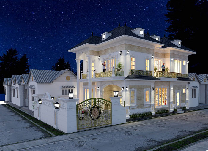 Hình ảnh 3D mẫu biệt thự tân cổ điển 2 tầng đẹp xao xuyến.
