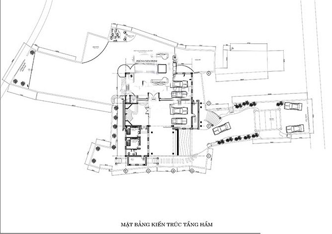 - Tầng hầm bao gồm: Gara oto, nhà kho, phòng chiếu phim, hầm chứa rượu