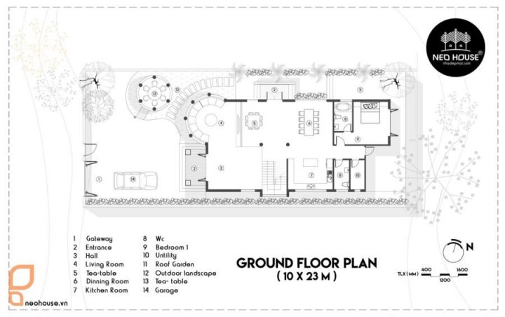 Nhìn một cách tổng quan chúng ta cũng dễ dàng nhận thấy có sự phân chi tỉ lệ hợp lý giữa nhà ở và sân vườn. Đây là điều mà bất cứ đơn vị thiết kế và thi công nào cũng chú trọng tư vấn cho chủ đầu tư để tạp được không gian sống xanh và nâng cao sức khỏe, tinh thần. Phía kiến trúc nhà ở được thiết kế với đủ các phòng chức năng dành cho các thành viên trong gia đình.