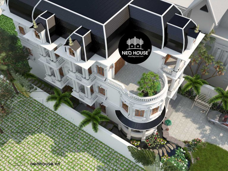 Những họa tiết trang trí bên ngoài của căn biệt thự này đều là sự chắt lọc những tinh túy của kiến trúc cổ điển Pháp với những đường nét, hoa văn trạm trổ, điêu khắc tỉ mỉ, tinh tế và cầu kì. Sự kết hợp hài hòa của kiến trúc tinh tế, tỷ lệ thích hợp và sự phân chia đạt đến độ hài hòa sẽ mang đến một kiến trúc hoàn mỹ.