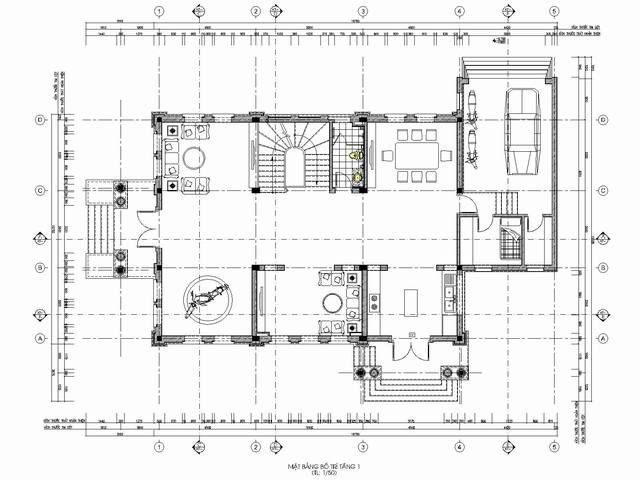 2.2. Mặt bằng tầng trệt biệt thự cổ điển 3 tầng kiểu Pháp