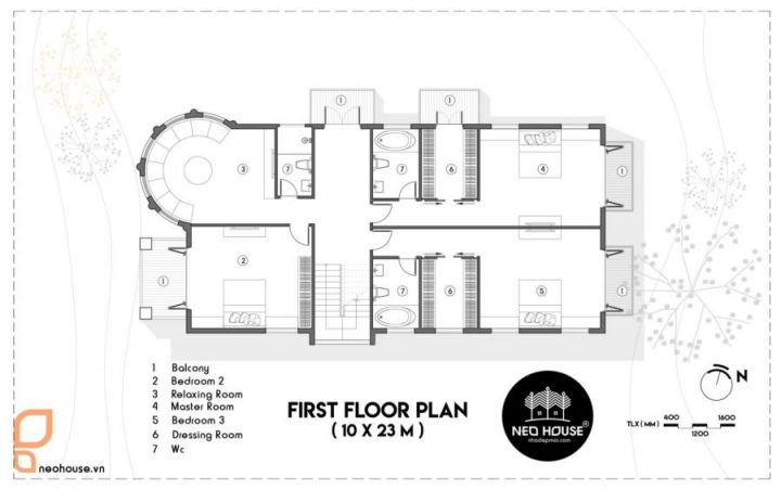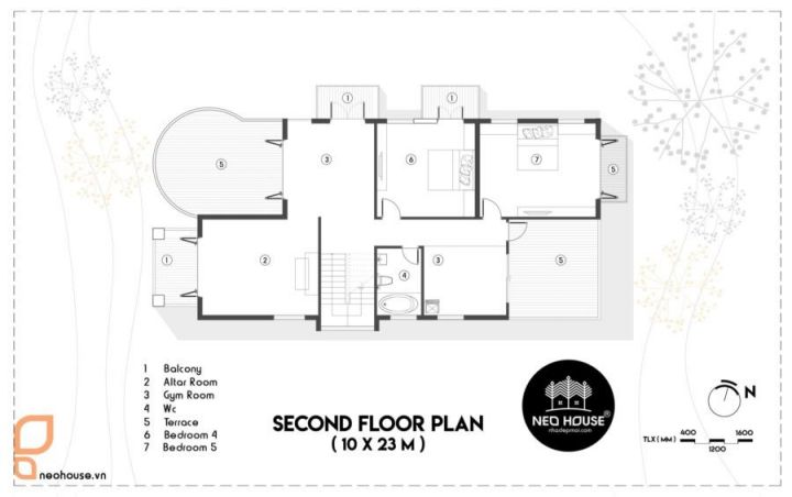 Mặt bằng tầng 2 được thiết kế bao gồm các phòng chức năng: phòng ngủ, phòng làm việc, ban công, nhà vệ sinh chung, phòng sinh hoạt chung. Đặc biệt, các căn phòng được bố trí hợp lý, khoa học, tiện dụng trong quá trình sử dụng nhưng vẫn phải đảm bảo phong thủy theo tuổi, mệnh của gia chủ.