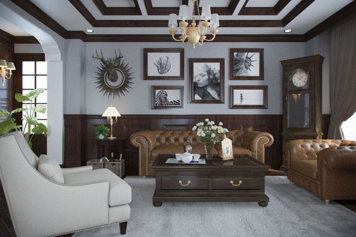 Mặt bằng của tầng 1 tạo cho người ta cảm giác về sự sang trọng và rộng rãi. Phòng khách được thiết kế chuẩn theo phong cách cổ điển với những chi tiết độc đáo, hài hòa. Những chi tiết tuy cổ điển là vậy nhưng lại có vẻ đẹp và sự sang trọng của riêng nó. Ngoài ra, trong quá trình thiết kế, kiến trúc sư quan tâm nhiều đến phong thủy và hướng nhằm mang đến bình an, tài lộc cho giả chủ và các thành viên trong gia đình.