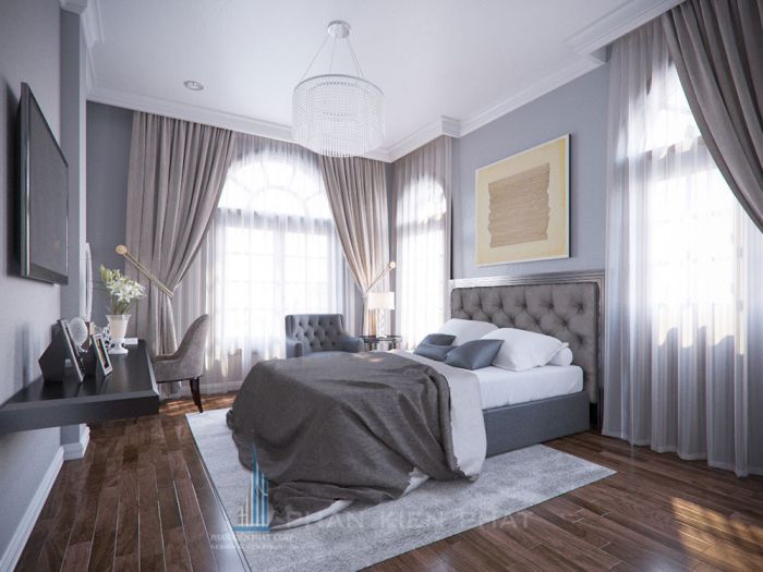 Khi thiết kế và thi công biệt thự 3 tầng kiểu Pháp, người ta chú trọng đến không gian của các phòng chức năng đều phải đủ ánh sáng và thông thoáng tự nhiên. Hầu hết các phòng ngủ đều được thiết kế kèm với ban công để mang đến tầm nhìn rộng và thoáng. Sự kết hợp hài hòa giữa kiến trúc và thiên nhiên tạo nên một không gian gian biệt thự sang trọng 3 tầng phong cách cổ điển kiểu Pháp này.