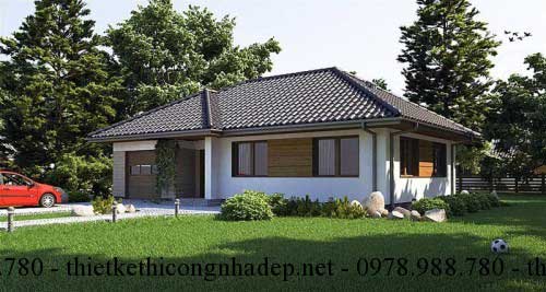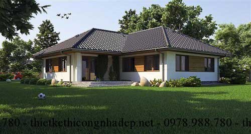 2. Thiết kế biệt thự nhà vườn 1 tầng mái thái đẹp 130m2