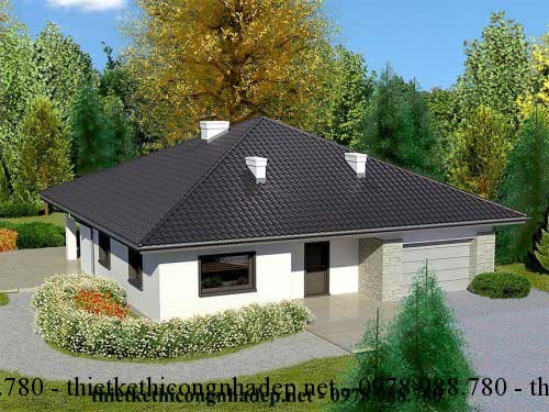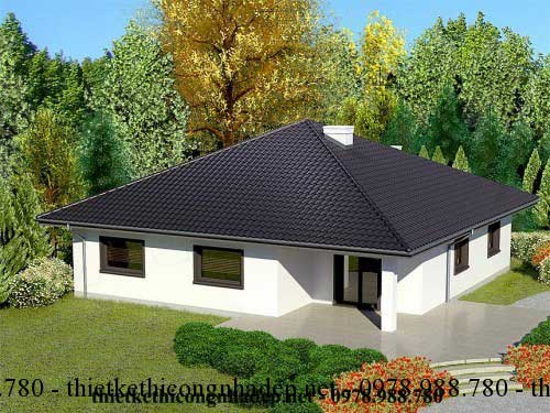 Thiết kế này được xây dựng khá đơn giản với phần mái không quá cầu kỳ, cấu trúc mái có thêm 3 ống khói để tạo điểm nhấn để tránh đổ và tăng tính thẩm mỹ và các yếu tố trang trí cho không gian này của biệt thự 1 tầng.