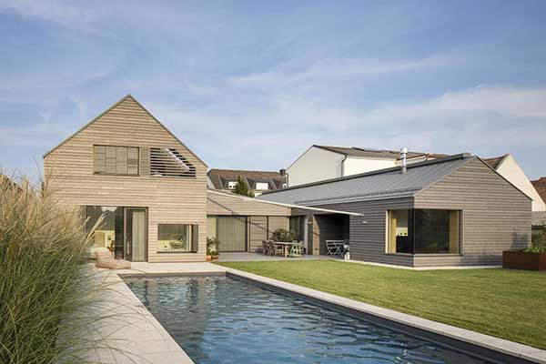 Mang phong cách nhẹ nhàng vùng Bắc Âu, mẫu biệt thự sân vườn 1 tầng này sẽ hoàn hảo cho những ai yêu thích sự nhẹ nhàng và yên bình. Kiến trúc ngôi nhà hình chữ L, bạn có thể tận dụng không gian bên ngoài với một bộ bàn ghế đơn giản. Cùng với những người thân yêu thưởng thức cafe, hay tắm nắng cũng là một ý tưởng không tồi. Ngôi nhà dường như trở nên thu hút hơn khi bạn sử dụng các chi tiết gỗ đan xen trong thiết kế.