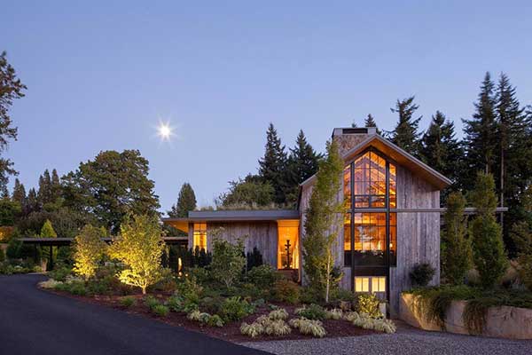 Một ngôi nhà nhỏ trong rừng chính là cảm giác của bạn khi nhìn vào mẫu biệt thự sân vườn 1 tầng này. Ngôi nhà được tạo nên với kiến trúc bằng gỗ và cửa kính kim loại, nó vừa đảm bảo vẻ đẹp sang trọng, hiện đại, vừa gần gũi với thiên nhiên. Ánh sáng màu vàng ấm áp biến ngôi nhà trở nên đẹp và lung linh hơn khi về đêm.