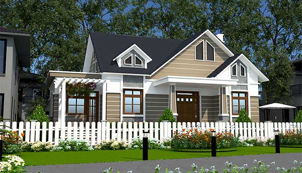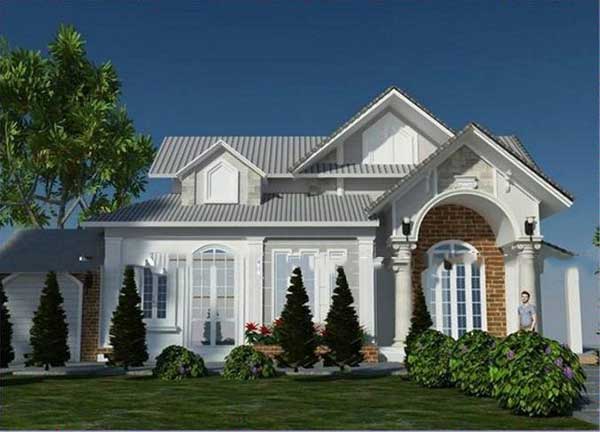 Kiến trúc mang phong cách châu Âu nhẹ nhàng, hiện đại của mẫu biệt thự sân vườn này sẽ đáp ứng được nhu cầu của bạn. Lối kiến trúc mái ngói theo phong cách tân cổ điển với những họa tiết đơn giản tạo nên sự nổi bật giữa không gian xanh của sân vườn. Gam màu trắng cùng với những ô cửa sổ có rèm che càng cho thấy không khí của một châu Âu thu nhỏ. Bạn có thể tạo đường đi cho ngôi nhà của mình bằng cách trồng các loại cây lớn.