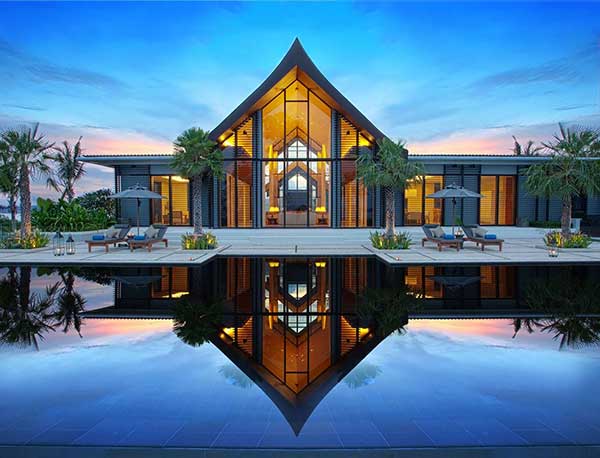 Mang phong cách của một khu resort cao cấp, đây sẽ là mẫu biệt thự sân vườn 1 tầng đẹp dành cho những ai có mong muốn sống cạnh bãi biển. Các khu vực trong nhà được thiết kế riêng biệt, liên kết với nhau bởi không gian sân vườn và tiểu cảnh vô cùng sang trọng. Cửa kính được sử dụng giúp cho ngồi nhà trở nên rộng mở, cảm giác hài hòa với thiên nhiên. Ánh sáng vàng nhẹ nhàng tạo nên cảm giác ấm cúng và thư giãn.