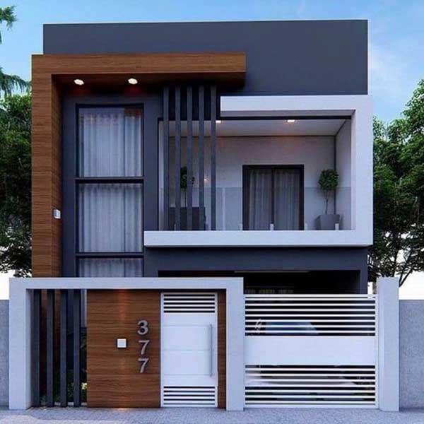 Cũng giống như mẫu nhà 1 trệt 1 lầu mái bằng ở trên, mẫu nhà này sử dụng gam màu trầm làm chủ đạo, kêt hợp với ngoại thất bằng gỗ, làm tăng vẻ sang trọng cho tổng thể không gian.