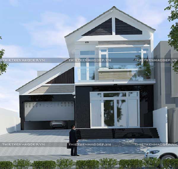 Việc thiết kế mẫu nhà 1 trệt 1 lầu mái thái đang là xu hướng nhận được sự quan tâm của hầu hết các khách hàng, phù hợp với hầu hết mọi người nhưng về mặt phong thủy thì vẫn đảm bảo. Với thiết kế lấy gam màu trắng làm chủ đạo tạo nên sự tươi sáng cho ngôi nhà, tuy khá đơn giản nhưng phía trước được nhà thiết kế dán đá màu đen phía trước ngôi nhà điều này cũng là một điểm nhấn cho mẫu này.