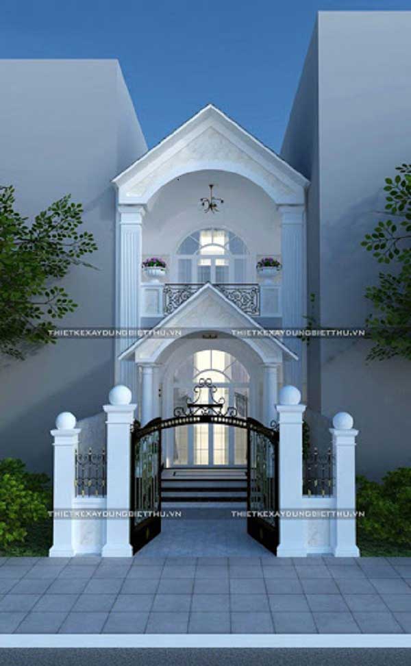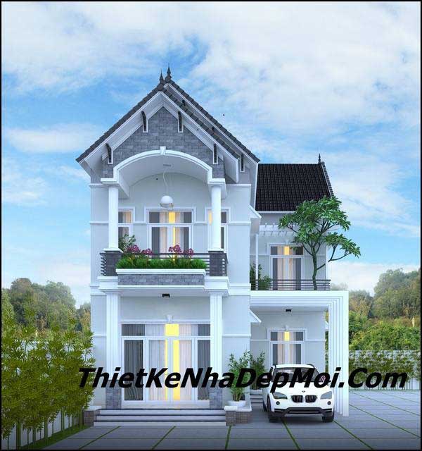 Với thiết kế sử dụng mái thái đem lại cho gia chủ một sự mởi lạ, bên cạnh đó các kiến trúc sư cũng tận dụng hết diện tích đang có để xây dưng một ngôi nhà sang trọng thể hiện được đẳng cấp của gia chủ. Lấy màu trắng làm tone màu chủ đạo tạo nên sự tươi sáng cũng với cánh cổng chính ấn tượng.