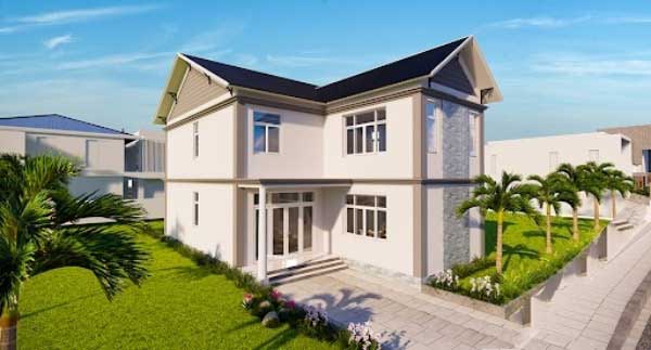 Với thiết kế hình khối kết hợp với mái chữ A sang trọng, hiện đại. Căn nhà có không gian rộng rãi với khoảng ban công thoáng mát rất thuận tiện cho gia chủ trồng cây cảnh, hoa… gam màu nhẹ nhàng chạm những đường bo sẫm màu làm cho căn nhà trở nên nổi bật, trẻ trung và mang nét thẫm mỹ cao.