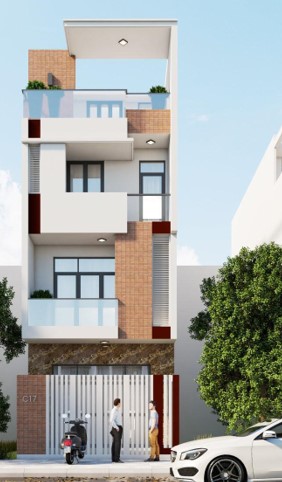 A. Phối cảnh mặt tiền ngôi nhà diện tích 50m 1 trệt 3 lầu :