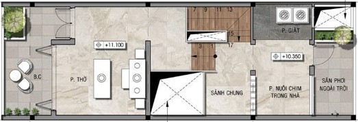 Mặt bằng tầng 4 : Theo rất nhiều sự thay đổi từ việc trao đổi trực tiếp với chủ đầu tư thì các gian phòng được kết hợp thông qua các chức năng từ : Sân phơi, sảnh chung, phòng giặt, phòng thờ… như được tổ chức bám sát theo diện tích từ mặt bằng để chúng trở nên thuận tiện hơn rất nhiều.