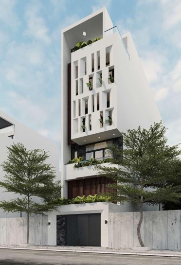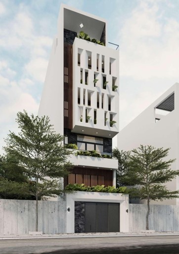A. Phối cảnh nhà 1 trệt 3 lầu có mặt tiền 5m :