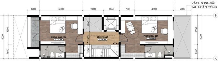 Mặt bằng tầng 2 : Có thể thấy chúng khía giống từ phần diện tích từ kết cấu tầng bên dưới. Những thay đổi từ kết cấu từ phong làm việc khi chúng đưa vào 1 phòng ngủ để nhân con số cho chức năng này lên thành 3.