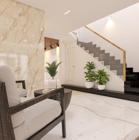 Thực sự thì với gam màu trắng được cho là gam chủ đạo như hiện diện ở hầu hết mọi vị trí, mà các màu đen, gỗ hay gạch dán tưởng đã làm trọn vẹn thêm cho công trình. Tuy diện tích từ chiều ngang quá lớn để việc thiết kế trở nên đơn giản hơn nhưng với con số 5m từ hương mặt tiền có thể là một con số thực sự phù hợp để kiến trúc sư diễn đạt ý tưởng của mình cho chủ đầu tư nhắm rõ về định hướng của ngôi nhà. Để chúng có thể năng cao giá trị ngôi nhà lên giữa các dãy nhà liền kề.
