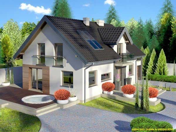 Với thiết kế không gian kiến trúc mở rộng, tận dùng tầng áp mái làm tầng 2, căn nhà phát huy được những công năng tiện ích. Sỡ hữu 5 phòng ngủ mang lại không gian sống thoải mái và tăng chất lượng sống cho các hộ gia đình. Sân vườn rộng rãi là 1 điểm cộng của mẫu nhà này vì sân được bố trí nhiều cây cảnh vừa giúp tăng vẻ đẹp trong không gian sống còn giúp cho ngôi nhà trở nên bớt nhàm chán và có thể tổ chức sinh hoạt, party ngoài trời ngay tại gia mà không cần lo lắng, lăn tăn. Đây là mẫu nhà đang rất được ưa chuộng ở châu Âu, là một ý tưởng sáng suốt cho các hộ gia đình đông người hiện nay.
