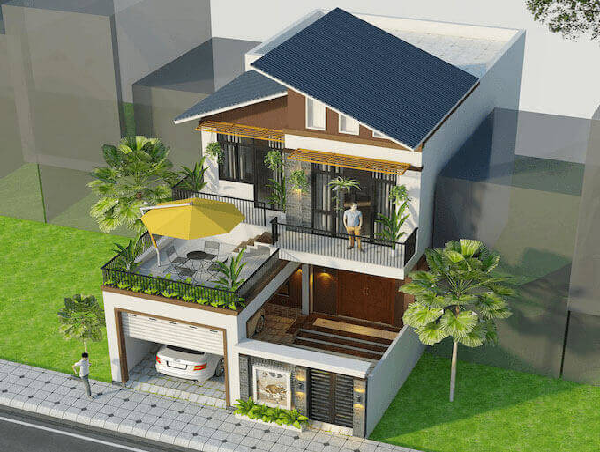Thứ nhất về mặt tiền của mẫu nhà 2 tầng 7 x 12m để có vẻ ngoài thu hút cần chú ý: