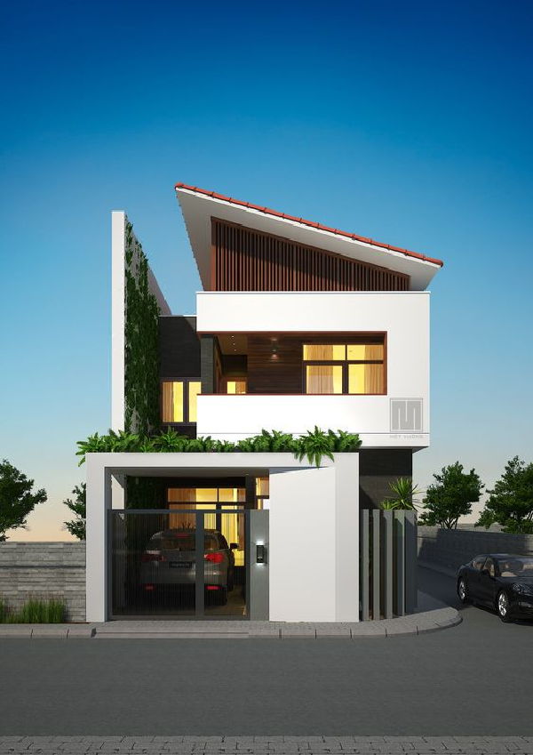 Mẫu nhà 2 tầng 7m x 12m tiếp theo sẽ khiến bạn phải dành một sự thán phục cho kiến trúc sư bởi đây là một công trình có sự sáng tạo về mặt kiến trúc xây dựng, phù hợp cho những mẫu nhà đẹp khu vực thành phố hiện nay. Áp dụng hình khối phong cách hiện đại trong thiết kế với 2 tầng kết hợp thêm một tum ở khu vực tầng thượng cùng với phần mái xéo vô cùng ấn tượng.