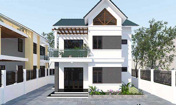 Mẫu nhà 2 tầng 90m2 này tận dụng rất tốt diện tích của không gian. Ngôi nhà được xây dựng chính giữa ô đất, xung quanh được thiết kế thành sân vườn tạo sự thông thoáng cho ngôi nhà. Kiến trúc đơn giản, không quá cầu kỳ nhưng được thêm vào một số chi tiết thiết kế làm tăng tính thẩm mỹ cho ngôi nhà. Bạn có thể trồng thêm một số cây xanh, hoa cỏ xung quanh ngôi nhà hoặc ban công sẽ giúp cho ngôi nhà của bạn trở nên đẹp và thu hút hơn rất nhiều.