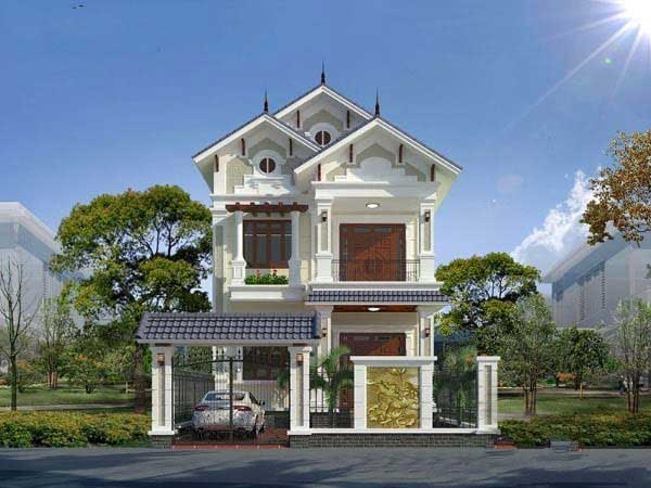 Còn nếu bạn yêu thích một không gian theo phong cách tân cổ điển thì mẫu nhà 2 tầng 9x8m này chắc chắn sẽ là sự lựa chọn dành cho bạn.Mẫu nhà cổ điển này khiến bất cứ ai cũng phải ngoái nhìn bởi những họa tiết trang trí xinh đẹp trong kiến trúc. Không gian vừa có sân vườn, vừa có ban công, cửa sổ giúp hoạt động của các thành viên trong gia đình trở nên dễ dàng hơn.