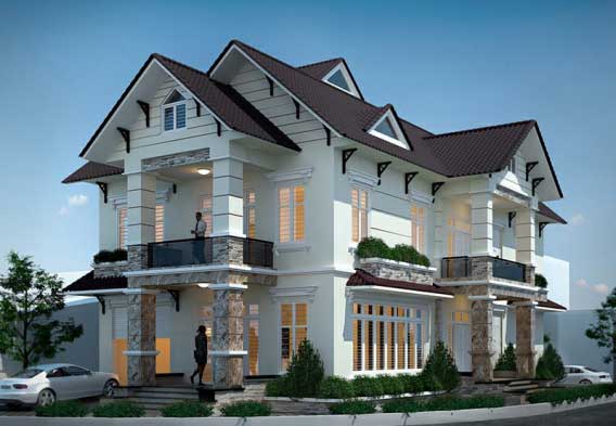 Ngôi nhà mái thái 2 tầng này thiêt kế dáng biệt thự sang trọng, lịch lãm. Với tone màu trắng bao phủ toàn bộ ngôi nhà đẹp, điểm thêm chút màu ghi xám làm điểm nhấn. Mang phong cách tân cổ điển, sử dụng hệ mái chống thấm nước, được thiết kế với độ dốc vừa phải, giúp thoát nước dễ dàng. Xung quanh trồng nhiều cây xanh giúp thanh lọc ngôi nhà, mang không gian xanh về tràn ngập ngôi nhà.