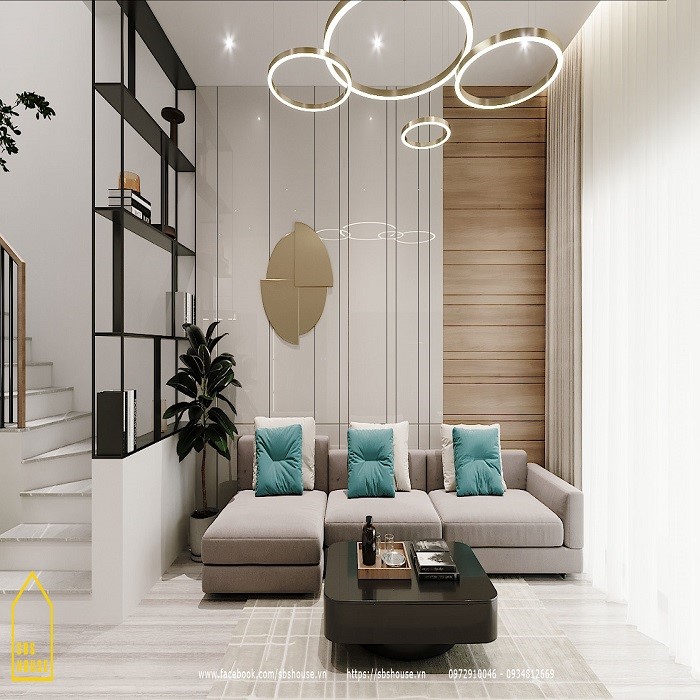 Đến với mẫu thiết kế mặt bằng tổng thể nội thất nhà phố 3 tầng diện tích 40 m2 chúng ta bắt gặp ngay mẫu sofa đêm êm kết hợp tông màu xám sang trọng kết hợp gối tựa màu xanh đẹp cùng với bàn trà được thiết kế và thi công trên chất liệu gỗ tự nhiên đó chính là gỗ sồi. Nguyên liệu gỗ để làm ra bộ bàn ghế có nguồn gốc 100% từ thiên nhiên và độ bền cao. Màu đen huyền thoại của bàn trà được coi là tông màu bền nhất với năm tháng, đây cũng chính là màu sắc chủ đạo cho phòng khách này. Gia chủ đã sử dụng màu sơn tường sáng để làm nổi bật nên vẻ đẹp cho bộ bàn ghế cũng như tôn nên giá trị của nó trong căn phòng.