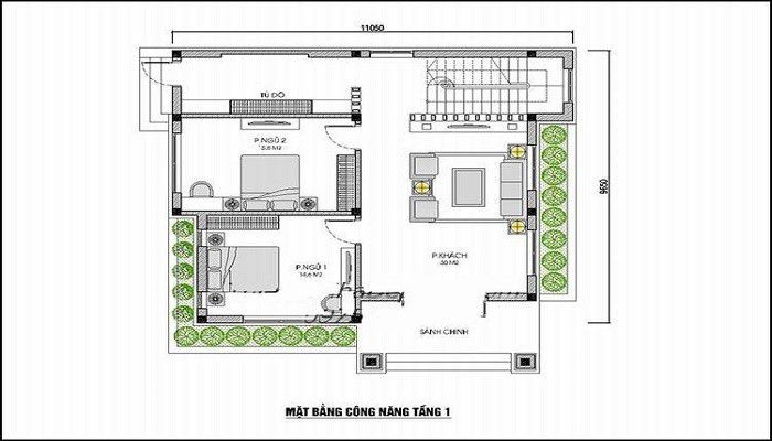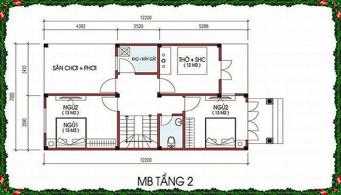 Bản phối cảnh cho chúng ta thấy sự minh bạch rõ ràng trong từng thiết kế phòng. Tầng hai của nhà 3 tầng được bố trí 2 phòng ngủ và một phòng thờ cùng sân chơi thể thao cho các thành viên. Với cách bố trí công năng trên, sinh hoạt của các thành viên trong nhà được linh hoạt và chủ động hơn.
