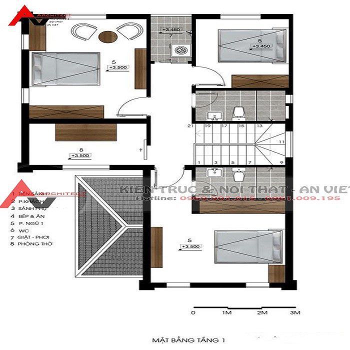 Mặt bằng tổng thể nội thất nhà 3 tầng kiểu Nhật.