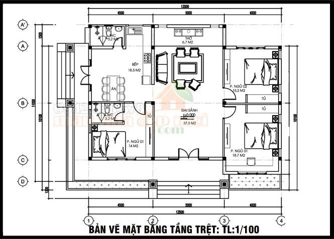 Bản vẽ mặt bằng công năng mẫu nhà 4 tầng 2 mặt tiền