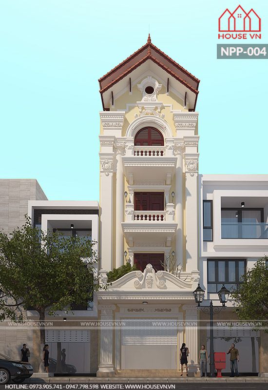 Phối cảnh mẫu nhà 4 tầng kiến trúc Pháp