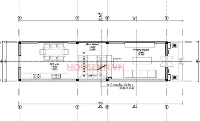 Trên tầng 2 nơi gia đình họp với phòng bếp + ăn và phòng khách là nơi tiếp những vị khách quý của gia đình.