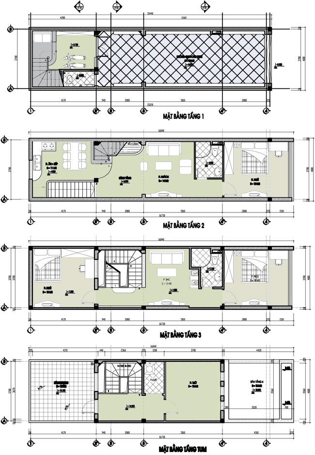 Bản vẽ mặt bằng công năng mẫu nhà 4 tầng mặt tiền 4m