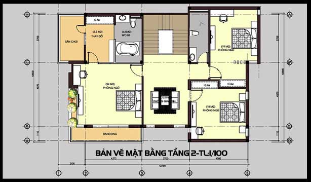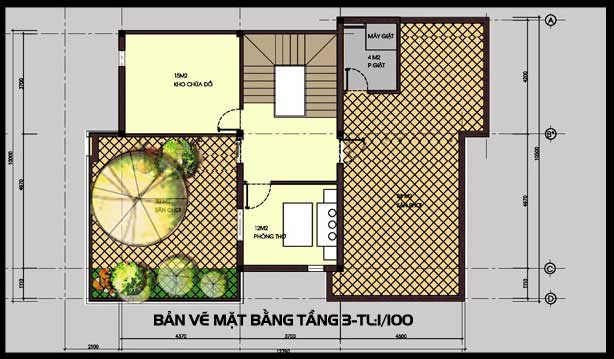 Chi tiết về bản vẽ biệt thự căn biệt thự mini 3 tầng mái bằng đẹp