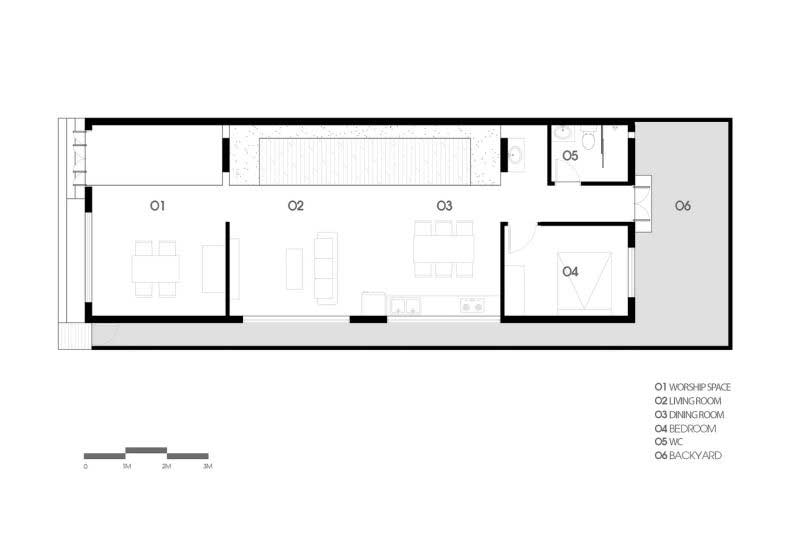 Các không gian sẽ được ngăn cách nhau bằng cách sử dụng các đồ nội thất. Đồng thời, sẽ có một khu vườn bên trong và 1 hệ cửa sổ được thiết kế rộng mở, diện tích thông thoáng để tăng khả năng đón ánh sáng và tạo khoảng không gian mát lành cho gia đình.