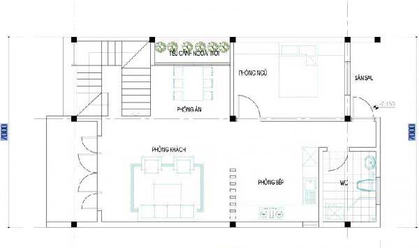 Tương tự như phương án thiết kế bên trên, kiến trúc sư tiến hành chia đôi 7m, cụ thể như sau: