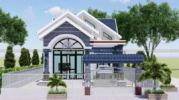 Khi áp dụng kiến trúc mái này cho mẫu nhà cấp 4 7x20 sẽ có phối cảnh mặt tiền như sau: