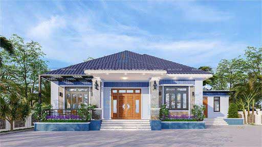 Còn đây như quý độc giả đang chiêm ngưỡng chính là mẫu nhà cấp 4 mái thái kiểu nhà vườn vừa trang nhã cổ điển lại vừa trẻ trung sắc trắng của sơn nhà kết hợp với ngói xanh. Khuôn viên rộng rãi rợp bóng cỏ hoa vốn đã yên bình nay có thêm ngôi nhà khang trang sừng sững càng mang lại cảm giác an toàn thư thái cho gia chủ.